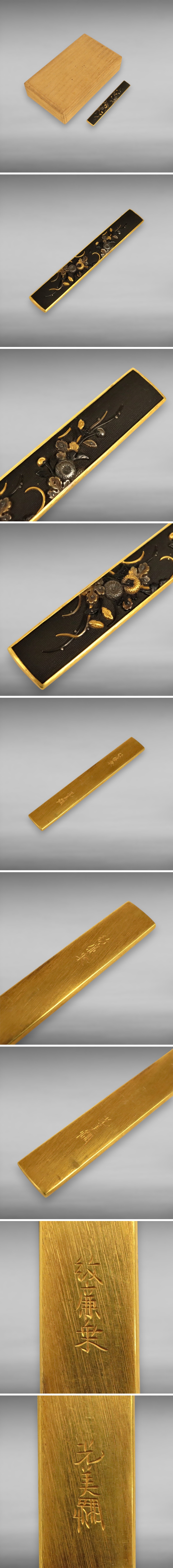 江戸期 金工 後藤宗家 十代廉乗(紋廉乗)造 後藤宗家十五代当主 光美(真乗)極の花押と銘有り 秋草図 小柄(刃なし) 箱 武具 刀装具 3371mbx 收藏