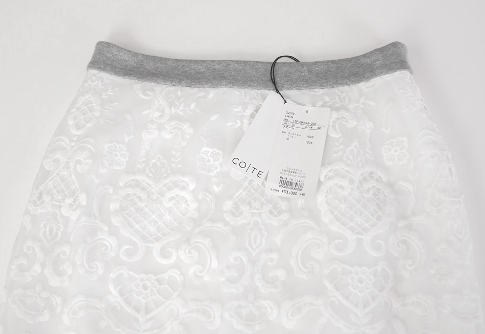 新品 57,240円 イタリア製 COTE ひざ丈タイトスカート M~Lサイズ40ウエスト70 35 cm ドレス花柄シルク絹レース結婚式38白パーティー二次会 收藏
