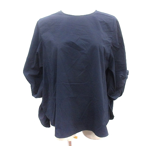 インディヴィ INDIVI シャツ ブラウス 五分袖 38 M 紺 ネイビー /