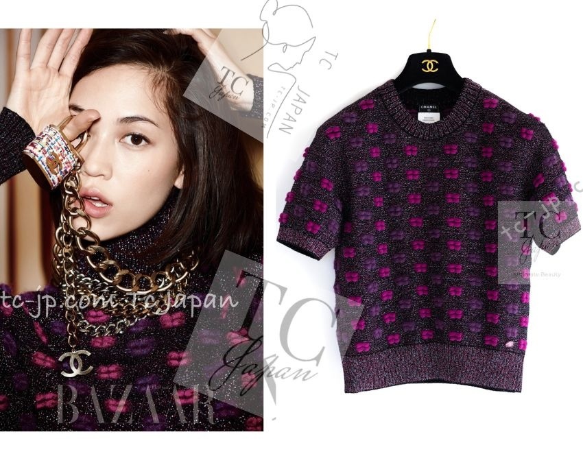シャネル セーター CHANEL パープル マジェンタ リボン リップ ウール