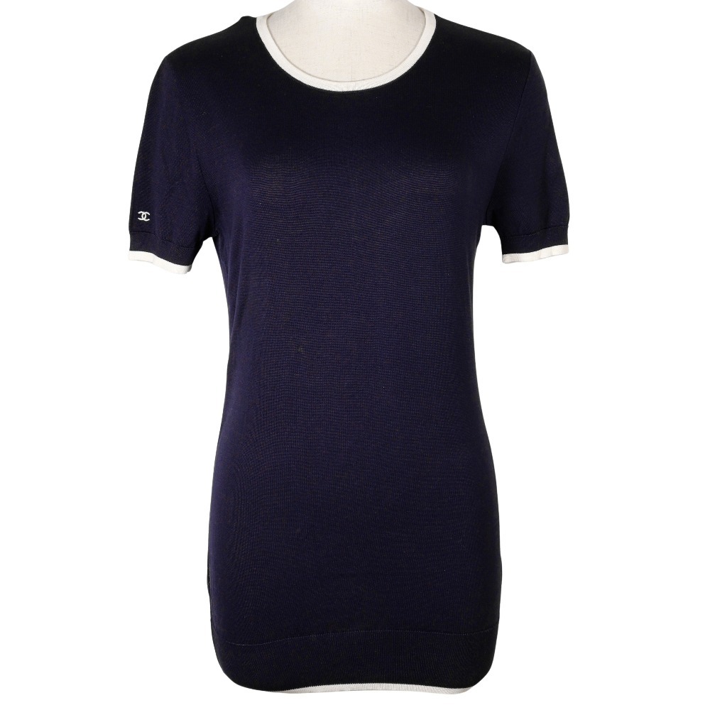 CHANEL シャネル 半袖 96P P06382 ニット コットン 紺 レディ