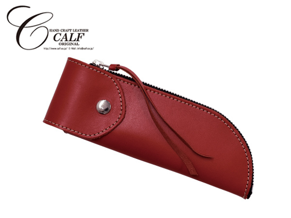 CALF カーフ 本革 レザーペンケース 2Wayタイプ red レッド 赤 シ