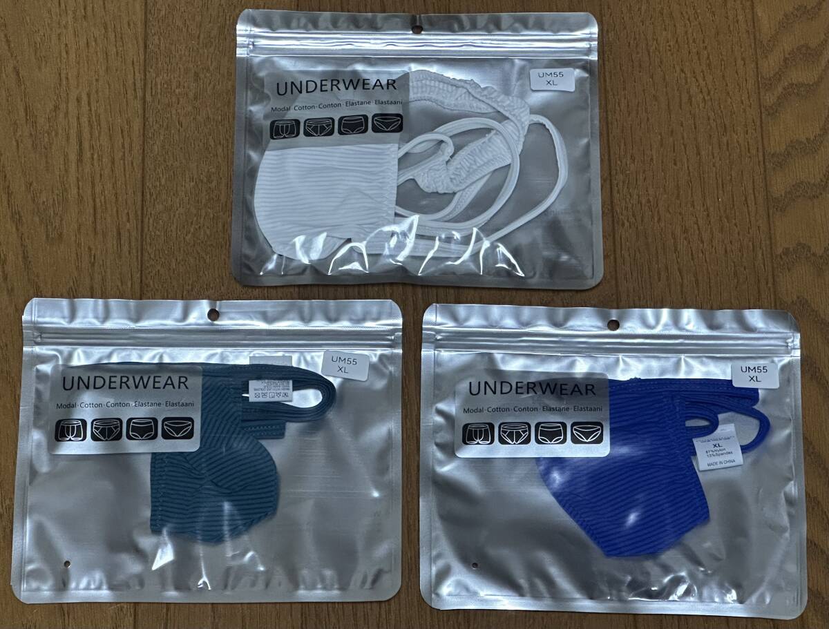メンズ 上向きハーフシーム Gストリング Tバック XL 青・緑・白3枚セット