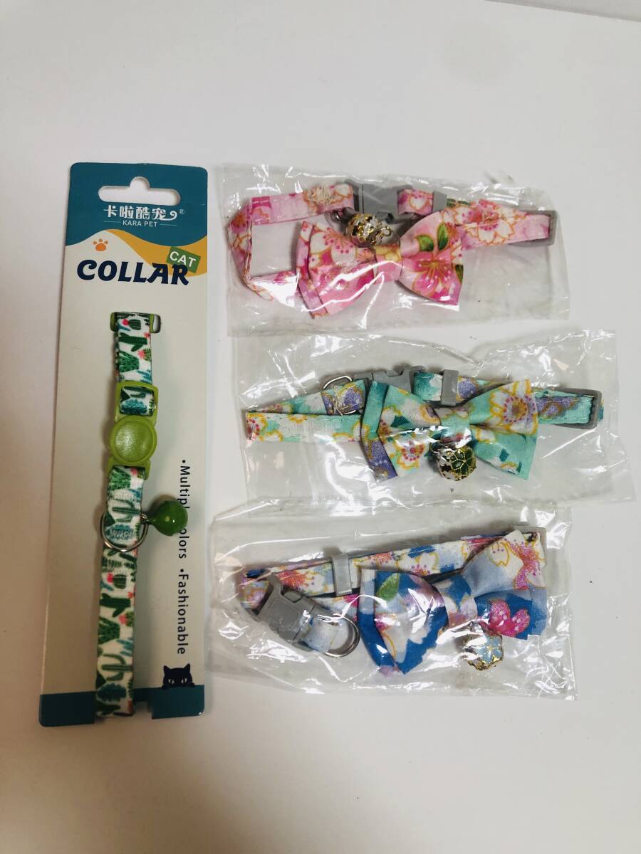 猫用リボン付き首輪4点セットC