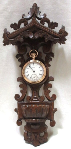 珍品 / 希少 ◆ 壁掛け用懐中時計飾り / 木製彫刻 / 吊り下げ型 / 鎖収