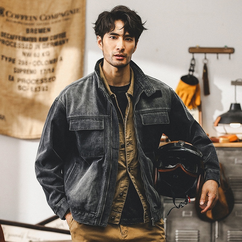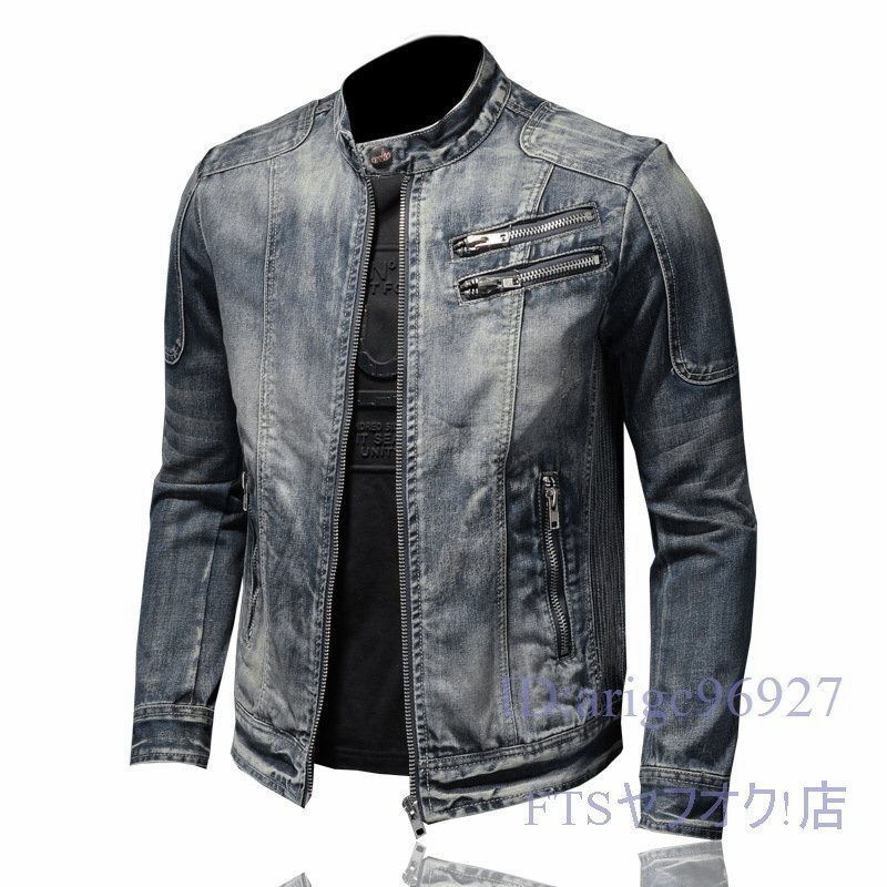 S828☆新品メンズライダースジャケット立衿デニムジャケットカジュアルアウターバ