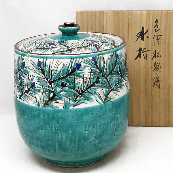 ★★送料無料 茶道具 水指 陶器 九谷 青 波 山 共箱