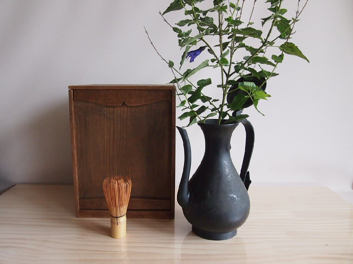 江戸時代 銅製水注25cm ブロンズ水差 木箱付 花入 茶道 華道 古美術
