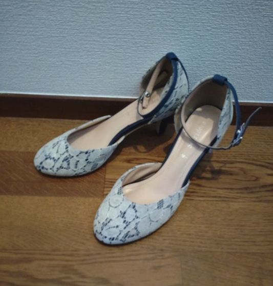 ラバーソール LOVER SOUL 白 シフォンリボン付 パンプス 23