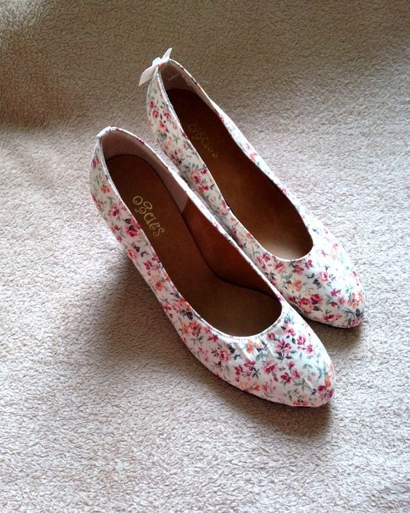 RANDA ランダ 爽やか柄物 布地 パンプスヒール 23.0cm 白ピンク