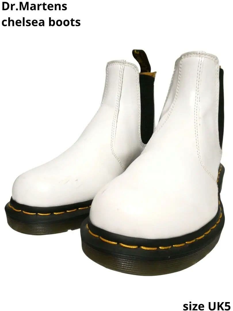 極上美品!レディースサイズUK5!ドクターマーチンサイドゴアチェルシーブーツ白ホ