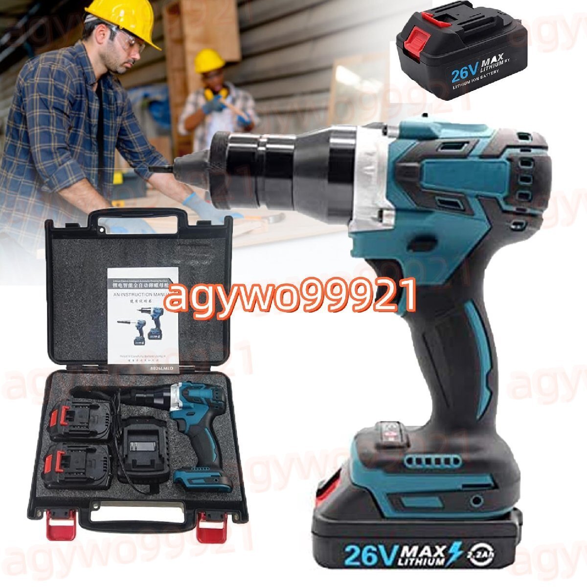 自動電動リベッターガン、バッテリー、充電器、リベット、リベットナット用キャリング