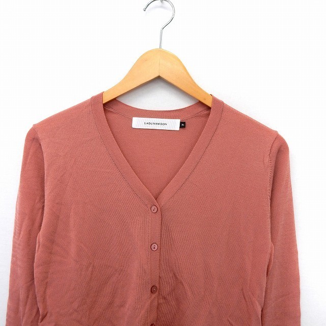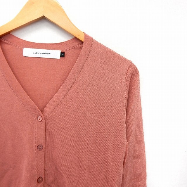 ラグナムーン LagunaMoon カーディガン ニット 長袖 V襟 シンプル F ピンク /ST15 レディース