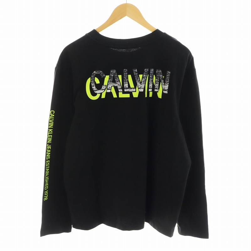 カルバンクライン CALVIN KLEIN Tシャツ カットソー 長袖 ロゴ L 黒 ブラック /AN27 メンズ