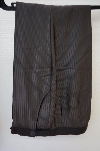 | ◇中古☆タキシード☆☆K-620-23☆ABL☆ブラウン記載/光沢ストライプ/全体的にシワが目立ちます。 |