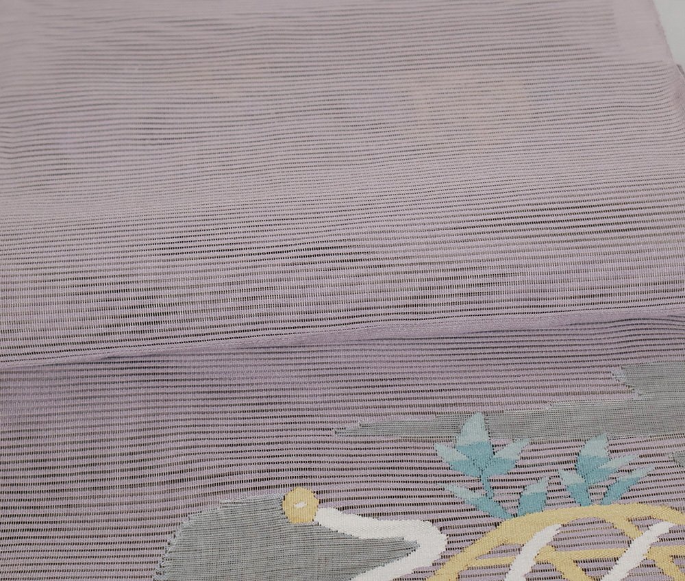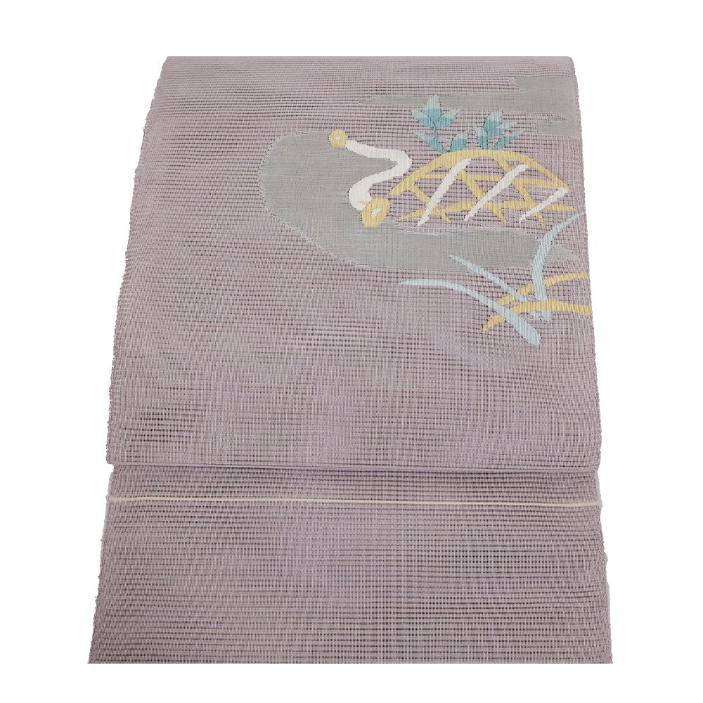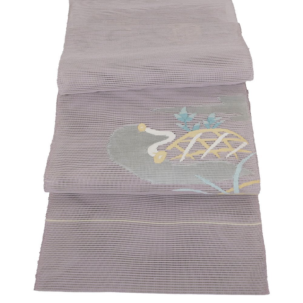 | 絽綴れ 名古屋帯 紫地 草花 新品 仕立て上がり | |
