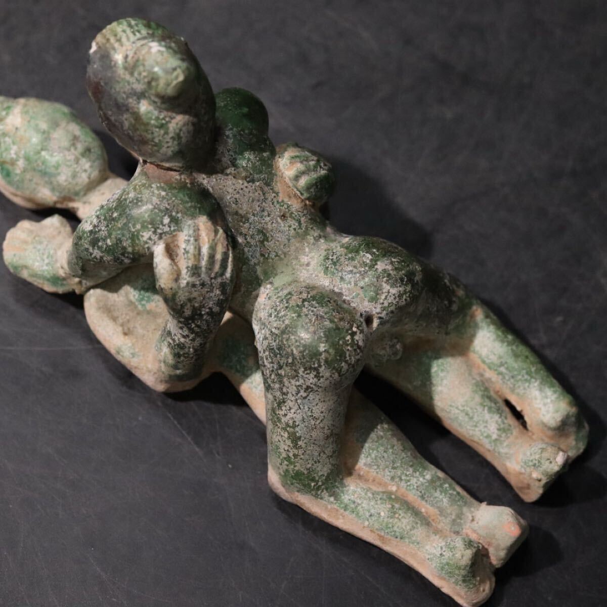 | 時代 緑釉 男女 春画 置物 共箱 / 陶磁器 陶器人形 土器 焼き締め 検索: 漢緑釉 唐加彩 .B1104 |