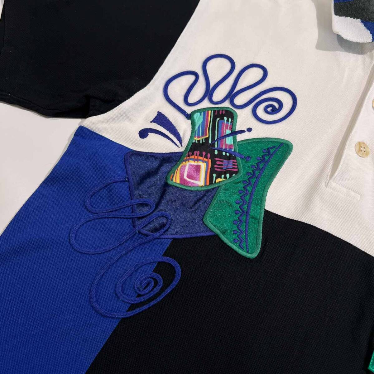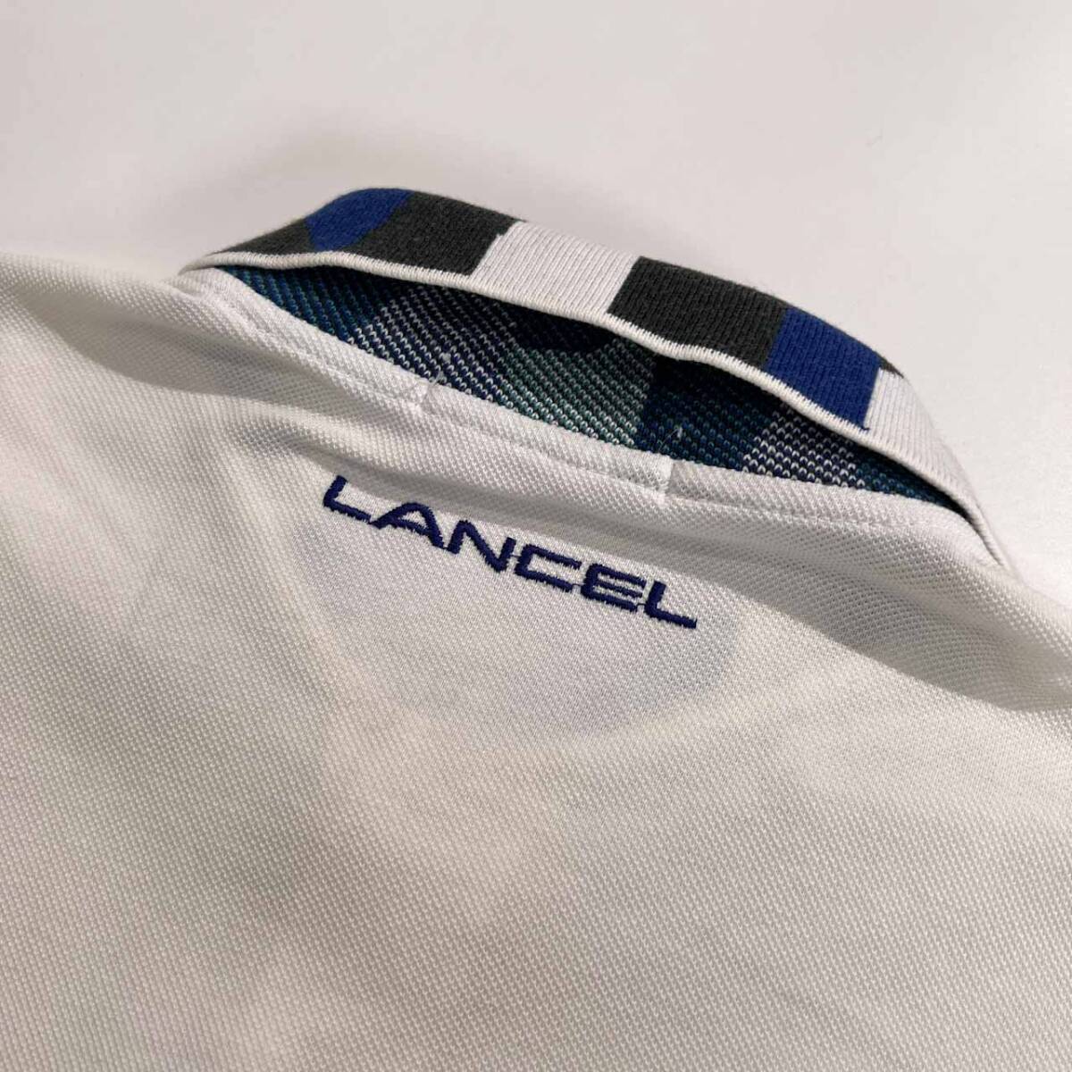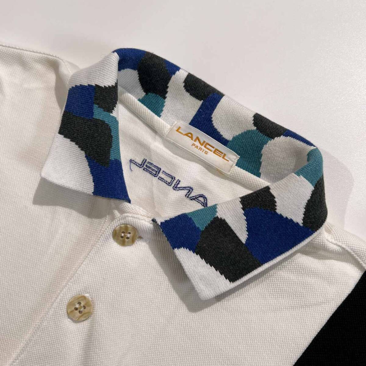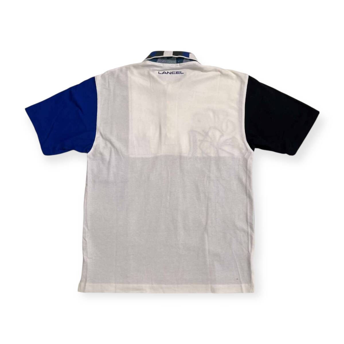 | 商品名 | LANCEL ランセル 豪華デザイン 切替 半袖 ポロシャツ サイズ M /メンズ/ホワイト×ブルー×ブラック/日本製 |