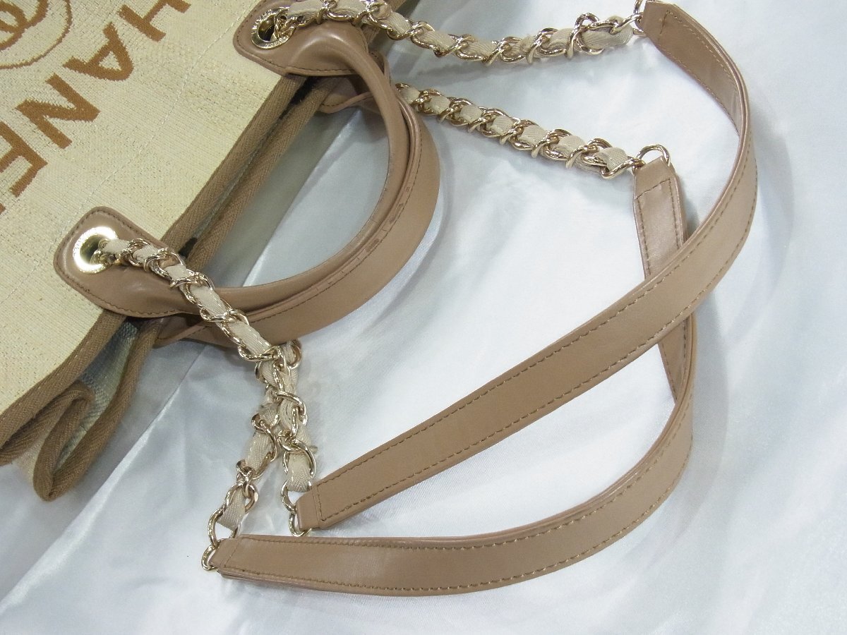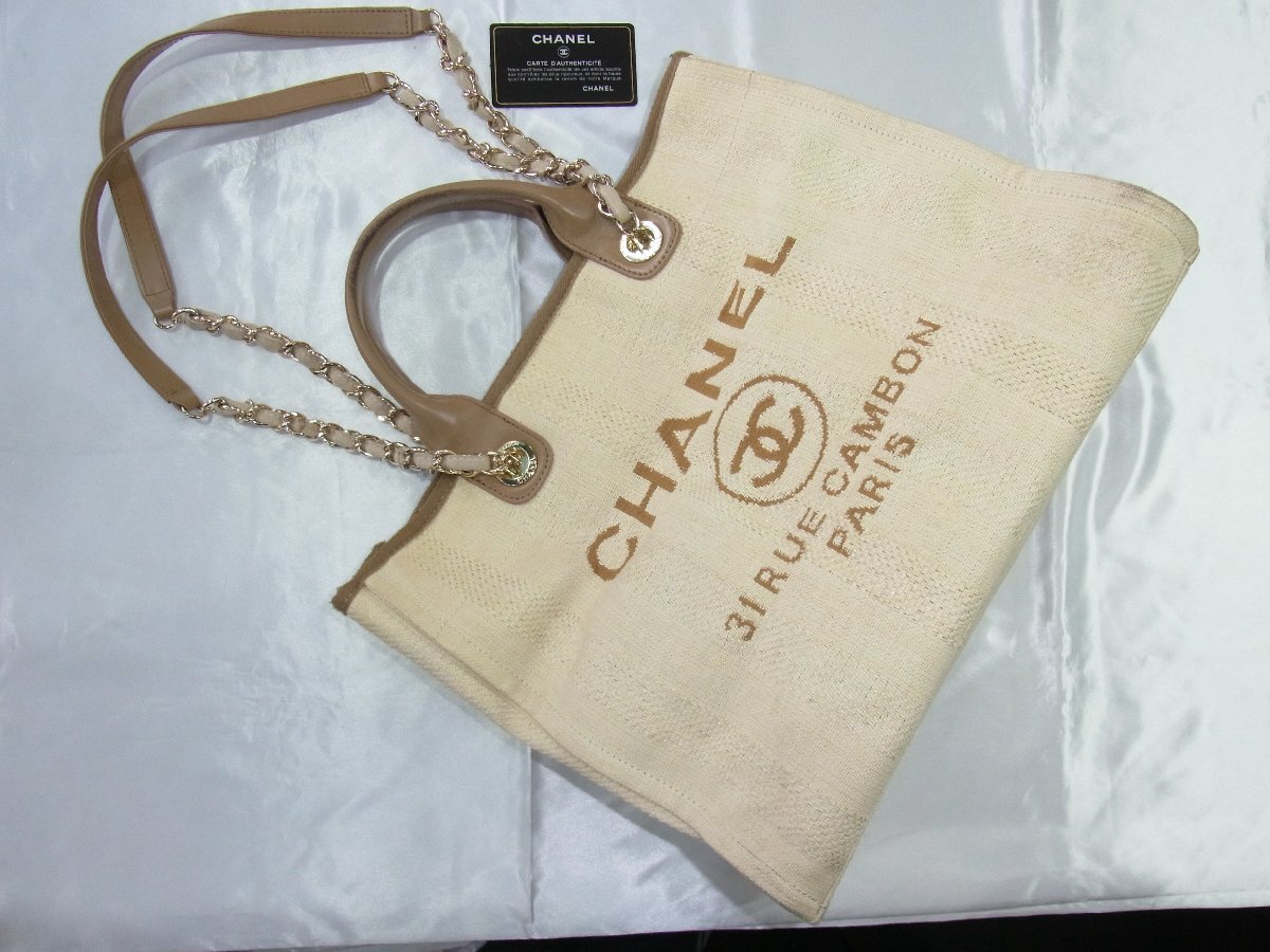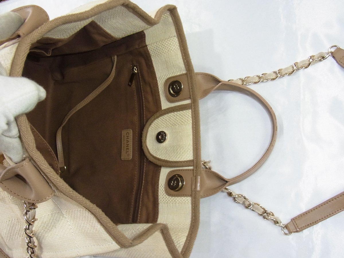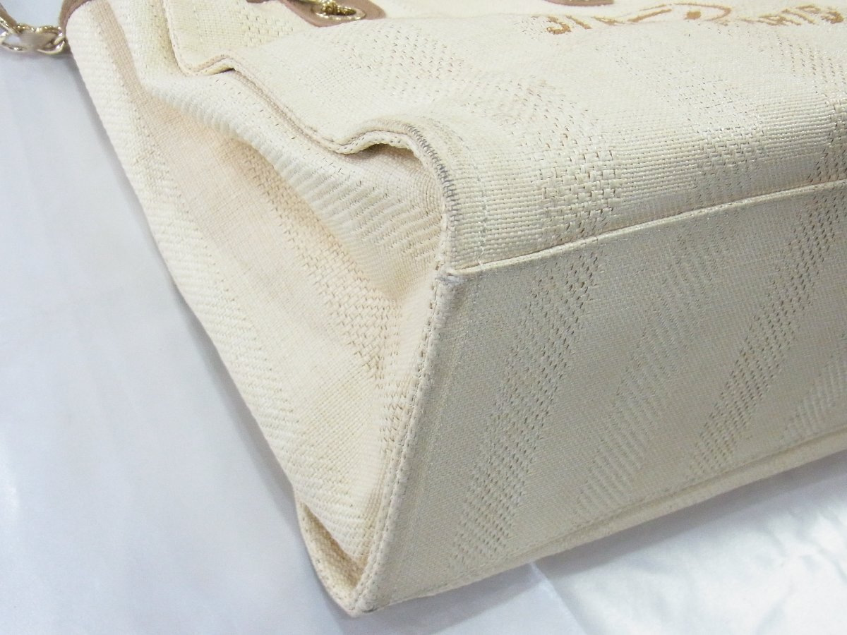 | シャネル CHANEL トートバッグ ドーヴィル キャンバス ジャカード アイボリーxブラウン 29番台 カード・シール有 中古良品 | |