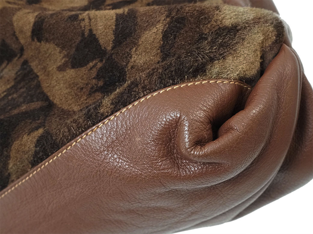 | 外側 | スエード白っぽい汚れ、フチの毛羽立ち フチスレ 角スレ レザーひっかきキズ ショルダーフチスレ、ひっかきキズ 金具にキズ、黒ずみ |