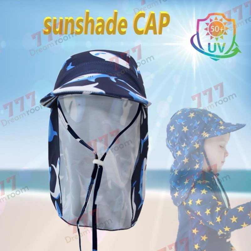 kids UPF50+ サンシェード スイムキャップ UVカット【18】 帽子 日焼け防止 日よけ 海水浴 公園 ツバ フラップ あご紐付き