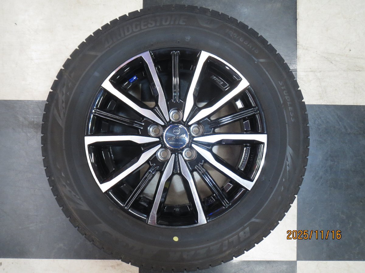 共豊 スマック 15インチ プリウス カローラツーリング 6J +45 5H100 中古 23年製 スタッドレス BRIDGESTONE BLIZZAK VRX3 195/65R15 中古