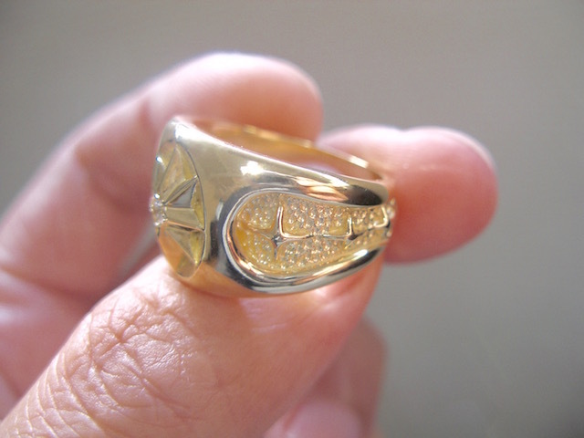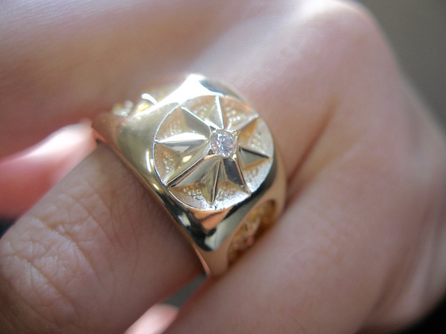 ごらん頂きありがとうございます。 オリジナルブランド 仁尾彫金『一つ星ダイヤゴールドギャラクシーカボションリング』を出品致します。宇宙をテーマにしたアクセサリーをオリジナルで自ら制作しています。今回、縦横 1.3×1.1cmの楕円に輝く星をイメージした立体的モチーフをカボションリング風に配置致しました。サイドには仁尾彫金オリジナルの3つづつ十字星のモチーフを配置しています。そこに今回、輝く星をイメージして2.6ミリの上級クラスのダイヤモンドを堀留しました。上級クラスのダイヤなので無色透明で照り輝きは最上級です!!全てK18の塊で重量は約21gと金を大胆に使用しています。全て金の塊なので永久にゴールドに輝き続けます!!オリジナリティを追求しデザイン、制作を私自身で行なっている為、今回、新品をご用意致します!! *こちらの作品につきまして14号から30号まで制作可能でございます。m(_ _)m *こちらの作品につきまして制作に3週間程度かかります。m(_ _)m K18イエローゴールド 約21g(K18刻印あり) ご質問等ございましたらお気軽にaerothmith@mac.comへご連絡下さい。m(_ _)m インスタにて仁尾彫金で制作状況を掲載していますのでお気軽にご登録をお願い致します。(^-^) 金プラチナにつきましてはフルオーダー制作も承っていますので、ご質問等ございましたらお気軽にaerothmith@mac.comへご連絡下さい。m(_ _)m その他も出品していますのでご覧下さい。m(_ _)m ■ ■ 仁尾彫金 ブランドコンセプトについて ■ ■ 幻影。まぼろし。の様な今までに無い個性的でアーティスティックなデザインを追究して作品を制作しています。 店舗販売はなく極少量生産で1つ1つ私自身で制作しています。 作者受賞歴 第37回2008 フレシュマン・ジュエリー・デザイン・コンテスト デザイン画 入選 これから、作品を増やしていこうと思いますので宜しくお願い致します。m(_ _)m designed byYAHOOオークションテンプレートBOX |