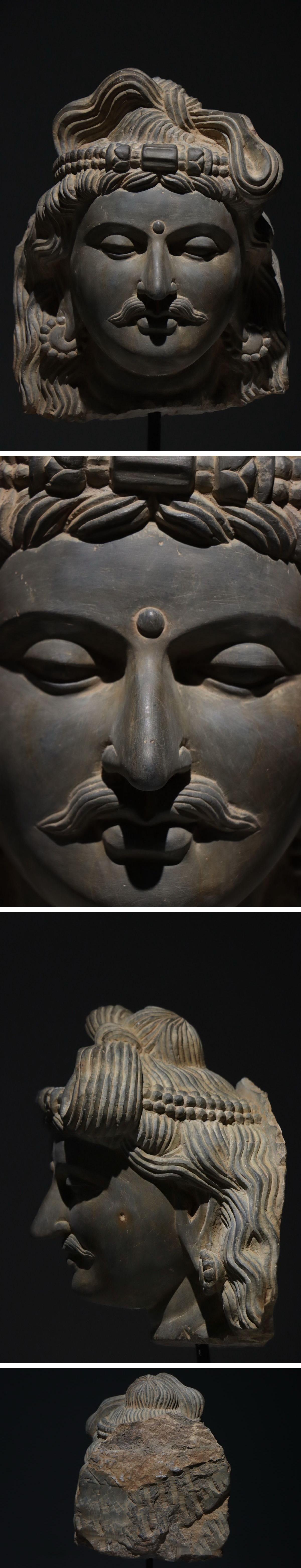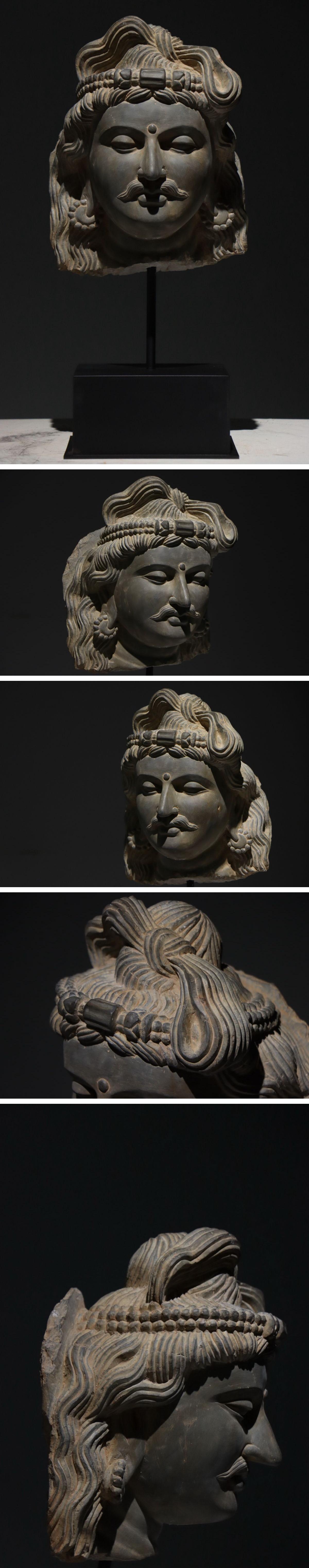 【清】関西某オークション購入 紀元1~2世紀時代 灰色片岩 釈迦王子ガンダーラ造像極細工 古置物 古擺件 仏教古美術7L12-RS16