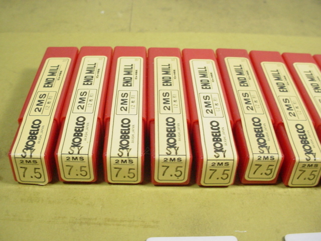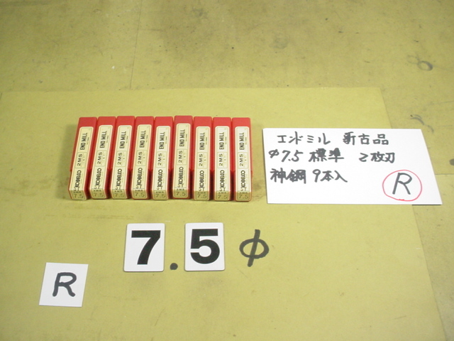 神鋼製 2MS エンドミルの新古品 7.5Φの2枚刃のものが9本組です。シャンクは8Φです。9本セットでの価格です。某社倉庫に長年眠っていた品物です。写真現状有り姿渡しでご入札下さい。Rセット