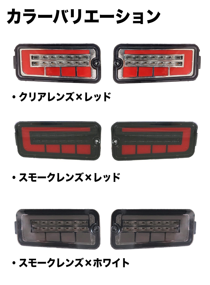 | ウィンカーに連動した流れるシーケンシャルウィンカー内蔵! 高輝度LED搭載でリアスタイルのドレスアップ効果大です! ■適合車種 ※ハイゼットトラック S500系用 ダイハツ:ハイゼット/ハイゼットジャンボ S500P S510P系(平成26年9月〜令和3年12月) トヨタ:ピクシストラック S500U S510U 系(平成26年9月〜令和3年12月) スバル:サンバートラック S500J S510J 系(平成26年9月〜令和3年12月) ■ハイフラ防止抵抗付き ※反射板は付いておりません。 ※防水加工済みとなりますが、コーキング等で防水処理を追加で行なって下さい。 雨水等の水漏れでの交換対応(初期不良期間含む)は出来かねますのご注意ください。 |
