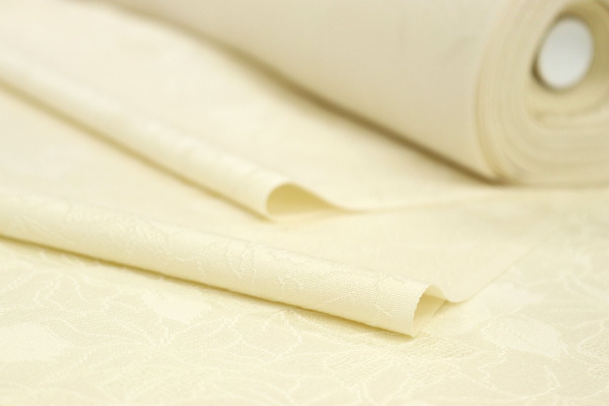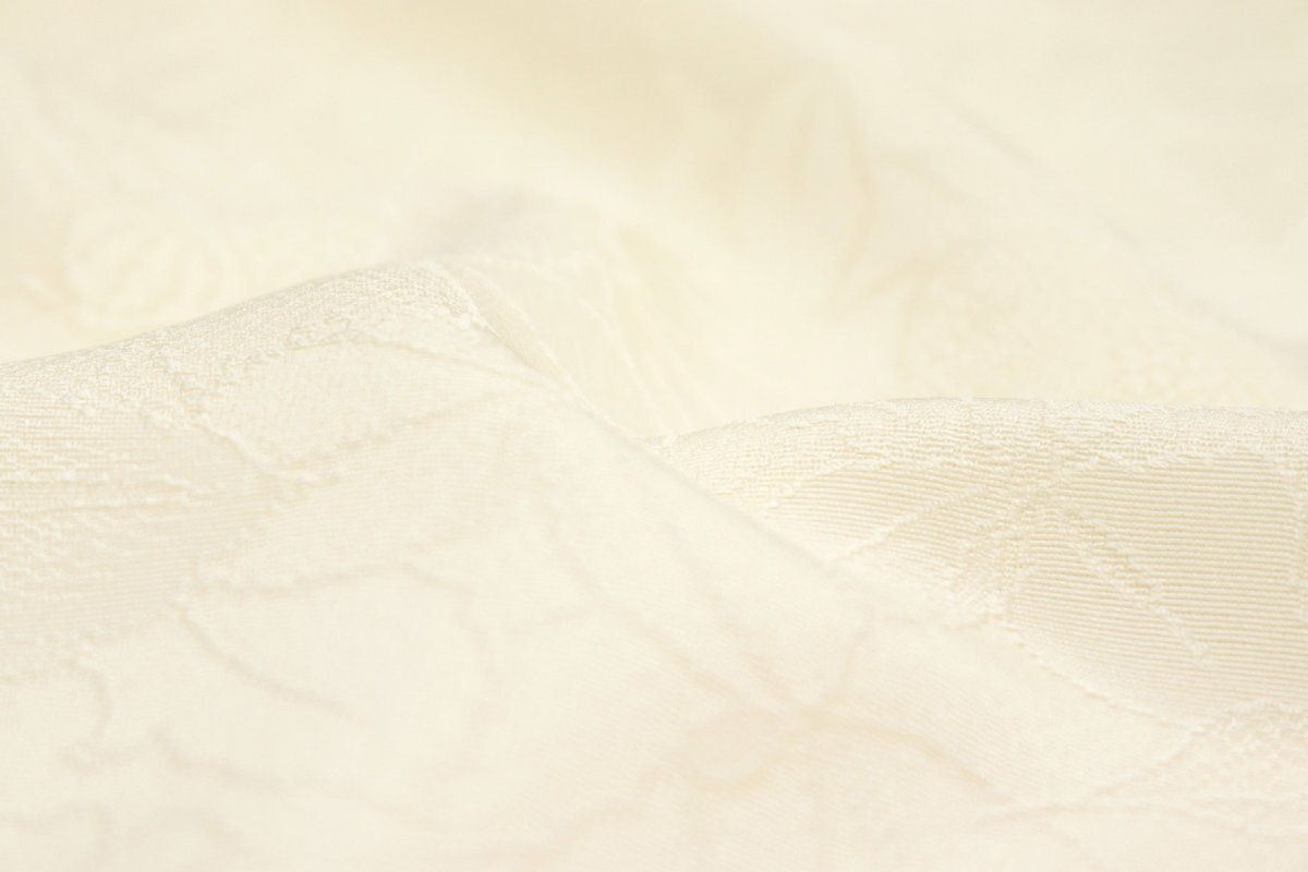 経済産業大臣賞受賞工場で織り上げられたしっとりとした素晴らしい生地は、薄クリーム色のお色目でございます。