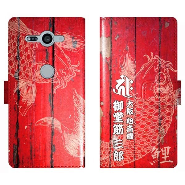 Xperia XZ2 Compact SO-05K 対応、干支を表す梵字と鯉の和柄デザインに名入れができる手帳型ケース