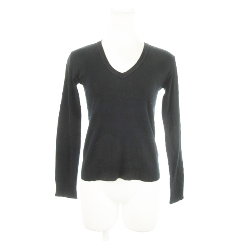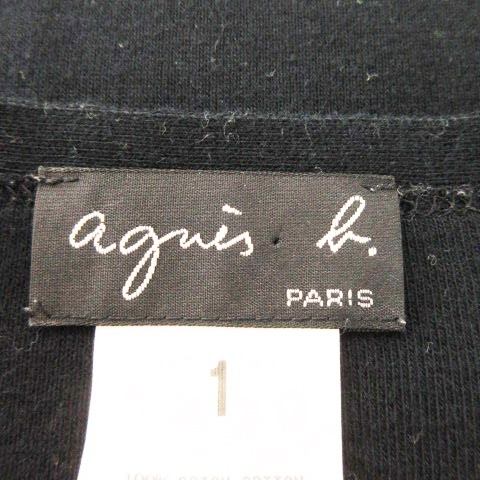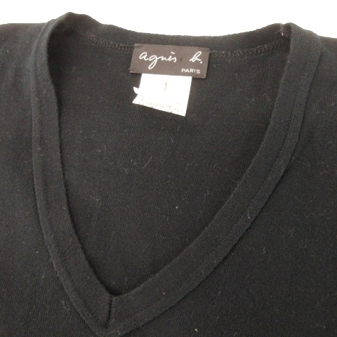 アニエスベー agnes b. カットソー ニットソー Vネック 長袖 ストレッチ コットン 1 S 黒 ブラック /AH24 ■GY99 レディース