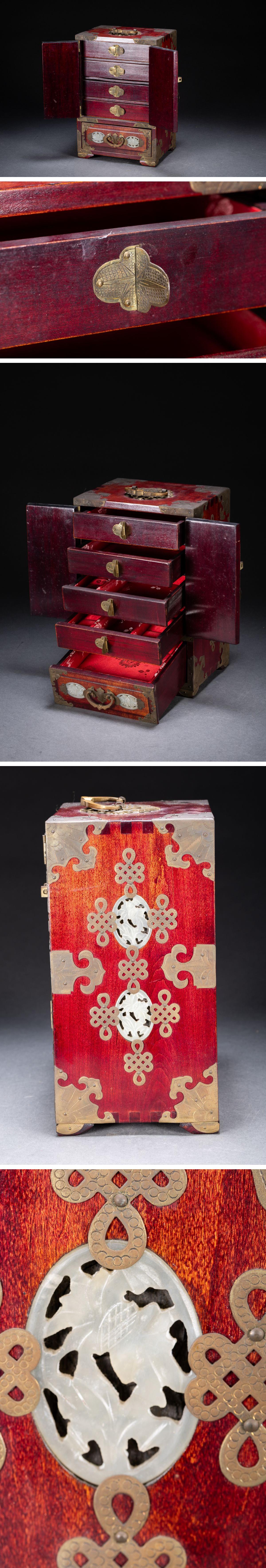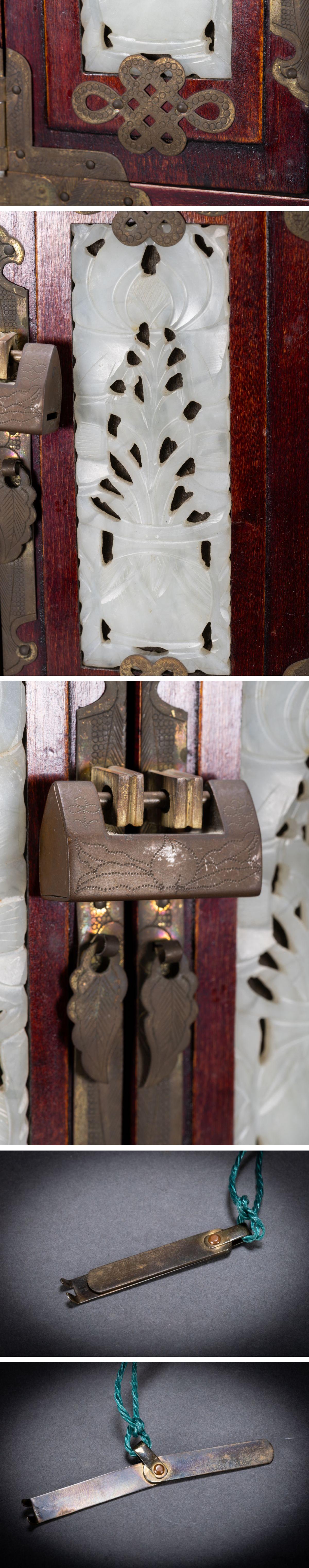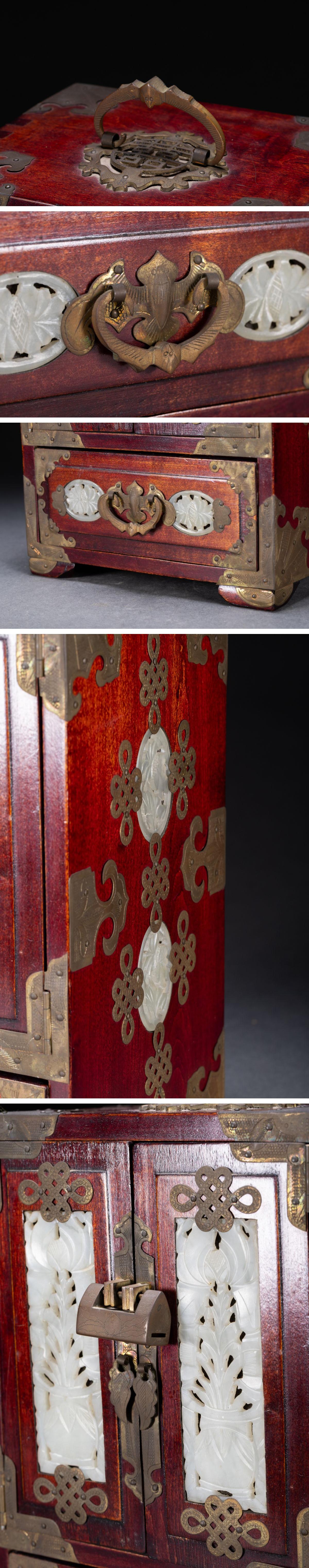 【清】関西某オークション購入 中国・清時代 唐木象嵌和田玉 箪笥 極細工 古置物 古擺件 中国古美術7L6-728S1