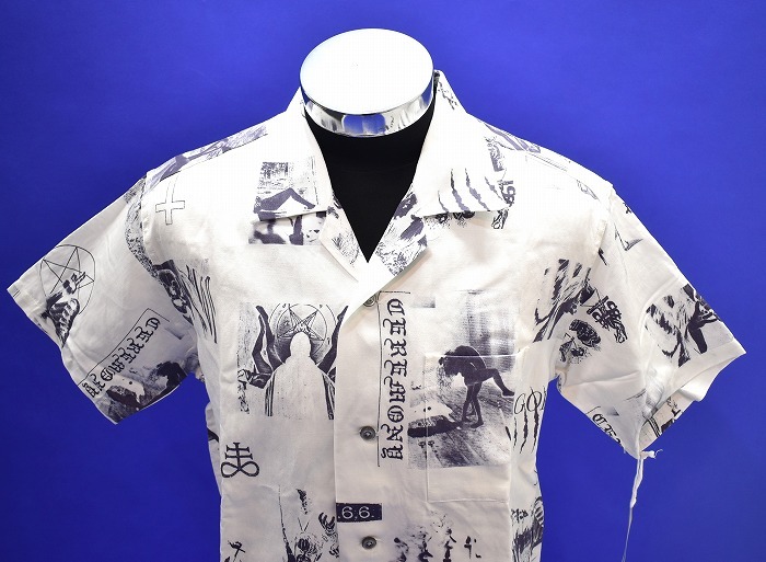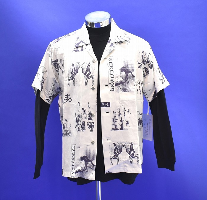 「Azuma (アズマ)」の SATANISM CEREMONY SHIRT サタニズム セレモニー 総柄 半袖シャツ レーヨン 開襟 オープンカラー ボーリング です。