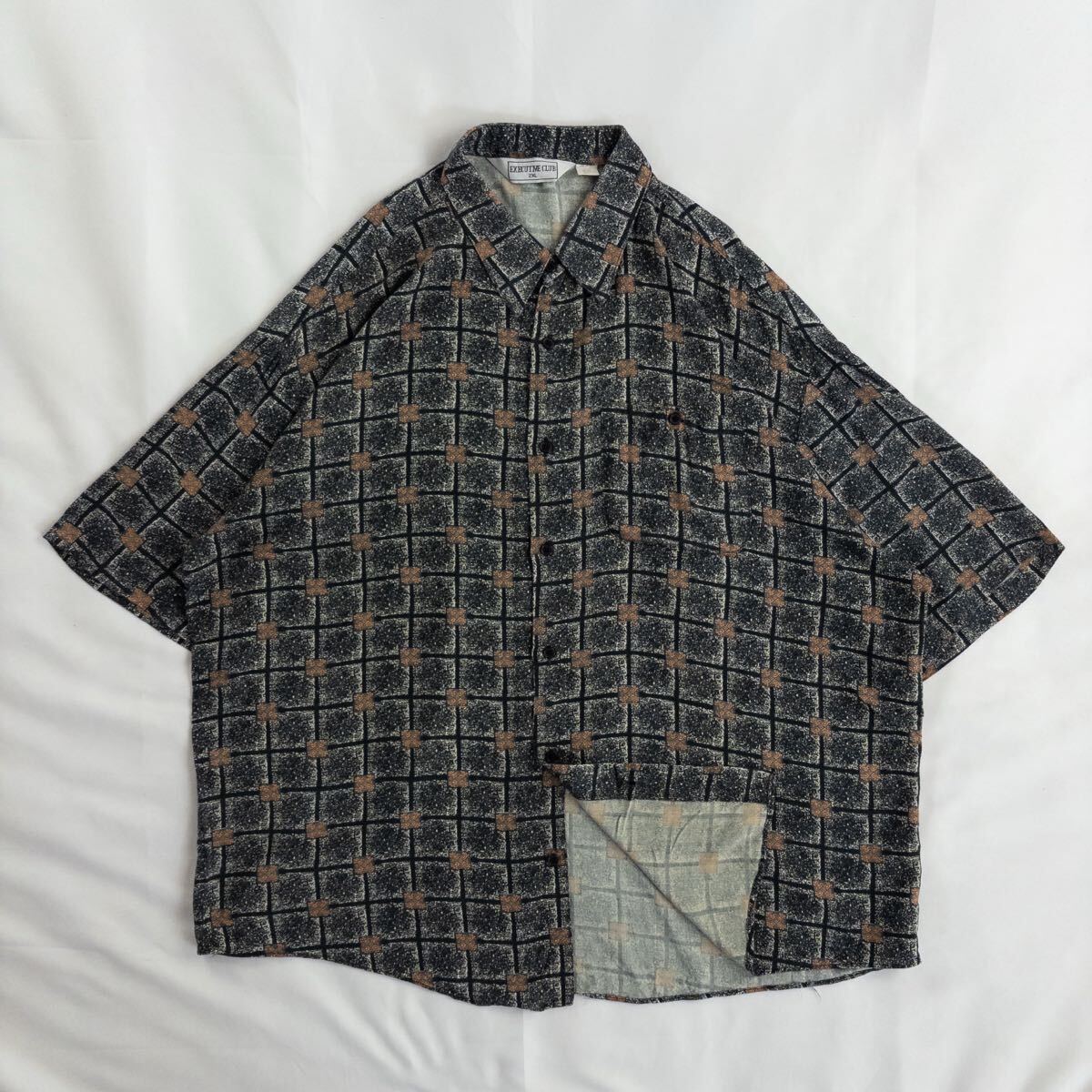 US Vintage 90s EXECUTIVE CLUB レーヨン100% アースカラー 幾何学模様 エスニック 民族 アジアン プリミティブ ブロック 格子 総柄 デザインシャツ| 出价者 | 信用 | 价格 | 时间 |