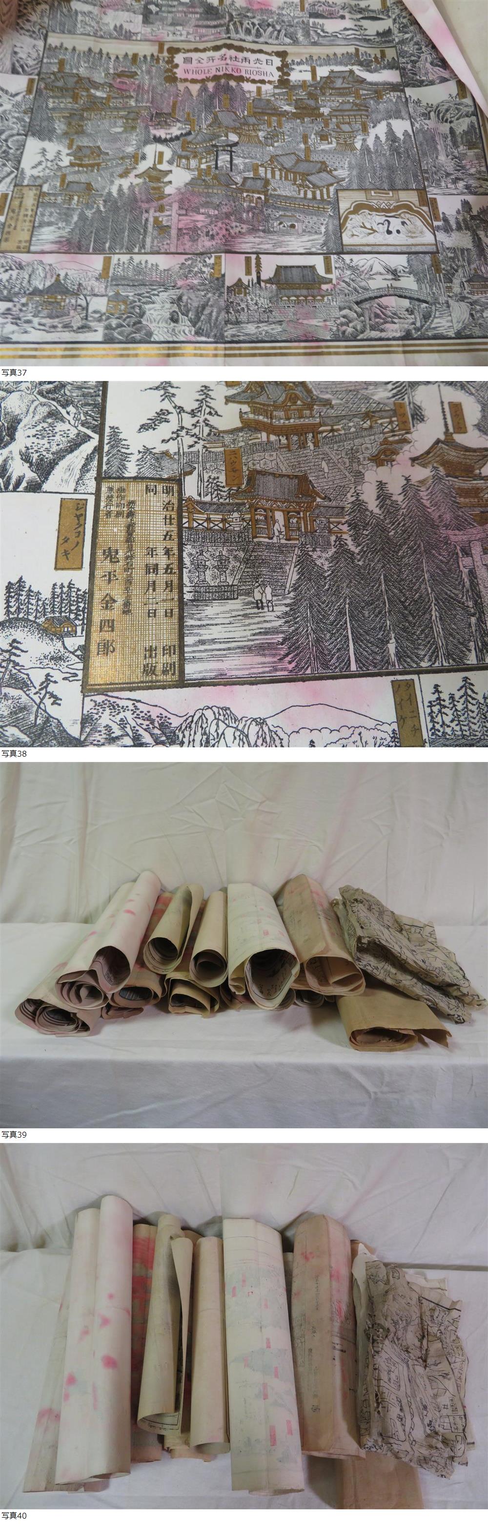 幕末から明治の古地図や鳥瞰図等、色々15点まとめ出しです。 現状品です。木版画、彩色木版画、銅版摺りの物で出版人は河村音松、鬼平金四郎、盛光堂 蜂屋十馬等です。 長期保存期間がある御品で経年による汚れやスレ、折り目等がある物なので予めご了承下さい。 出来る限り写真の掲載をしております。色々な物を出品しておりますので宜しくお願い致します。 当方が出品してる物でご検討されてる方、気になる事や価格交渉等はオークション開催中に必ずご質問下さい。 基本、即決や価格交渉や配送等の交渉は出来るだけご希望に沿う様にしております。 配送のお手配は(ゆうパック)の対応予定です。 ※※※※※※※※※※※※※※※※決済について※※※※※※※※※※※※※※※※※※※ 落札者様の中での決済項目の中に該当しない支払い方法でお願いされる事はありますが落札前にご自身の支払い決済で対応してる物でお願いします。 ※※※※※※※※※※※※※※※※発送について※※※※※※※※※※※※※※※※※※※ 初めに当方が送料の確定、サイズ設定が出来ないのは梱包する事での大きさ、複数の落札をされる方で同梱依頼等がある理由からです。 複数落札される方もおり御品は落札後に梱包しており送料連絡は出来るだけ早めに送っております。また、まとめ依頼等のご連絡は早めにお願いします。 (定形外での配送は破損事故も多く、配送中に破損しても自己責任で納得されない方も多いのでご理解した方のみ定形外での配送を希望されて下さい。) (ゆうパックの1週間や10日間等の長期の時間指定や長期の局留め等の対応は出来かねますので入札前にご検討、または質問した上でお声掛け下さい。ご質問なく長期の局留めをして受け取り連絡をされない方は今後ブラックリスト登録とさせて頂きます。) (ゆうパックで長期不在で受け取りされないで郵便局に御品を長期保管される方、別の他局に変更して尚も長期保管される方、その際に返送になる事は二度手間になり迷惑なのでご自身で時間指定をした上で取引時に必ずご連絡下さい。) 1:当方は郵便局が定めるサイズで配送としております。同日終了の御品で複数落札の方は定形外、レターパック、ゆうパックの最大サイズ以内に収まる物であれば全て同梱の対応としておりますので、複数落札の方は落札後にまとめ依頼の項目で手続きをして下さい。 2:物理的に御品の形によっては同梱が出来ない物も中にはあり、複数発送になる場合の物も中にはありますので予めご了承願います。 3:オークション代行業者様の落札で商品IDの記載をお願いされる場合は予め住所への記載をした上でお返事をお願い致します。 4:ゆうパックで時間指定が必要な方は落札後に取引メッセージでお伝え願います。(例:12時~14時等)レターパックに日時指定はありません。 5:定形外の特定記録、ゆうパケット、海外発送等は対応しません。またオークション期間中に何の質問もなしに落札後に定形外での梱包や送料についての自分ルールの様な細かい要求は対応しません。 6:定形外は全て規格外配送(御品によって規格内)としております。 ※※※※※※※※※※※※※※※※出品してる物について※※※※※※※※※※※※※※※ 目に見える範囲のキズ等は明記、写真でも掲載いたしますが、出品物は未開封、未使用、骨董品、中古、ジャンクで出品してる物によっては説明しきれない時代物の汚れ、スレ、変色、使用。小キズ等の欠点も中にはあります。 そういった経年の欠点を気になさる方、神経質な方は最初から入札をなさらない方が良いかと思われます。 出品してる物の時代感、状態も含めて大事にして頂けてご了承をした方のご入札をお待ちしております。 商品の状態等 未使用、未開封、良品、美品、極美品、中古、ジャンク、真贋不詳、本物保証が出来る物(絵画、版画等の色々と鑑定が必要な物)は商品説明に記載します。もし記載がない場合はご質問をお願いします。 御品のジャンク品について それぞれに内容・コンディションは異なりますが基本的にそのままの状態では使用できない不具合品です。 ・まとめ出しでのジャンクは限定的な確認しか出来ていない。 ・お届けした後に記載していない動作/状態/機能の不具合が新たに発見される場合もございます。 ・内外部破損汚損、状態、付属品有無は一切未確認・未メンテナンス、未クリーニングとゆう事を予めご理解下さい。 この商品説明は オークション落札相場サイト「オークファン」出品テンプレート で作成されています。 Powered by aucfan.com |
