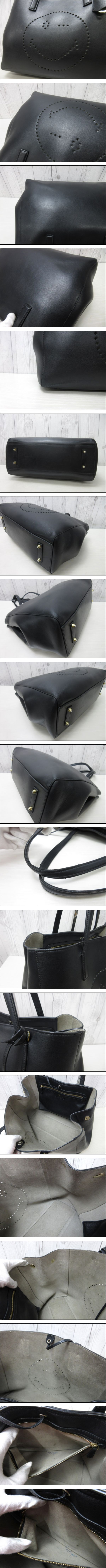 | 美品 ANYA HINDMARCH アニヤハインドマーチ スマイリーウインク トートバッグ ショルダーバッグ バッグ レザー 黒 A4収納可 96592Y | ||