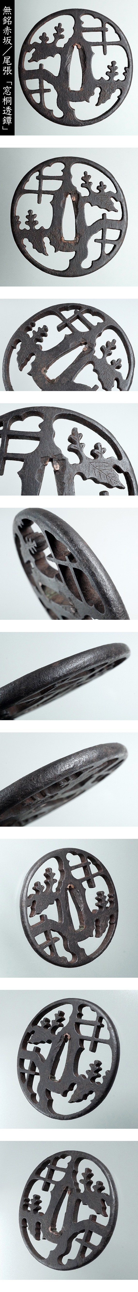 無銘赤坂/肥後鐔「窓桐透」切羽台4cm以上 耳鍛え筋有 江戸期鉄鍔 日本刀剣刀装小道具外装拵