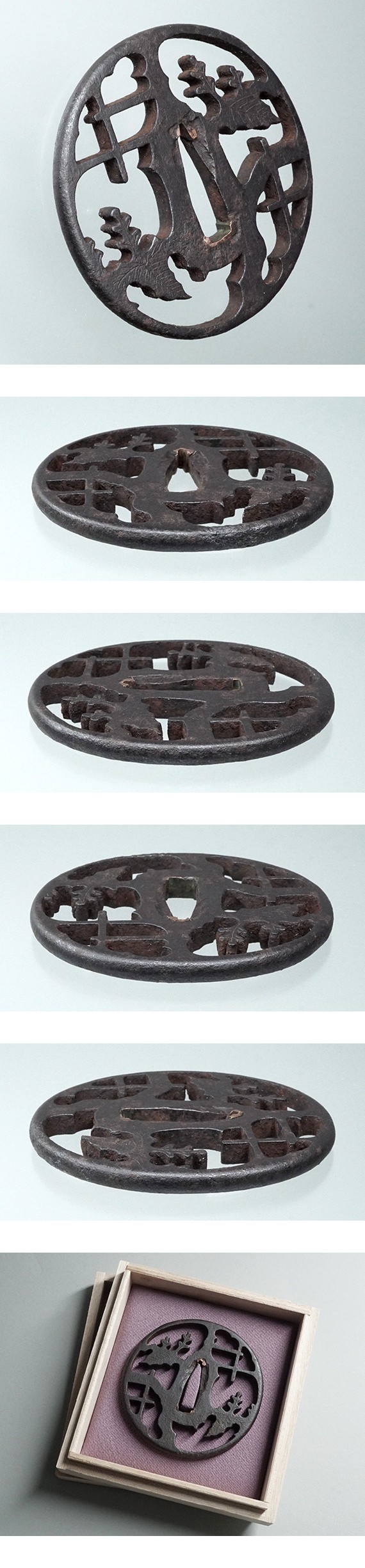 鉄地 丸形 地透 毛彫