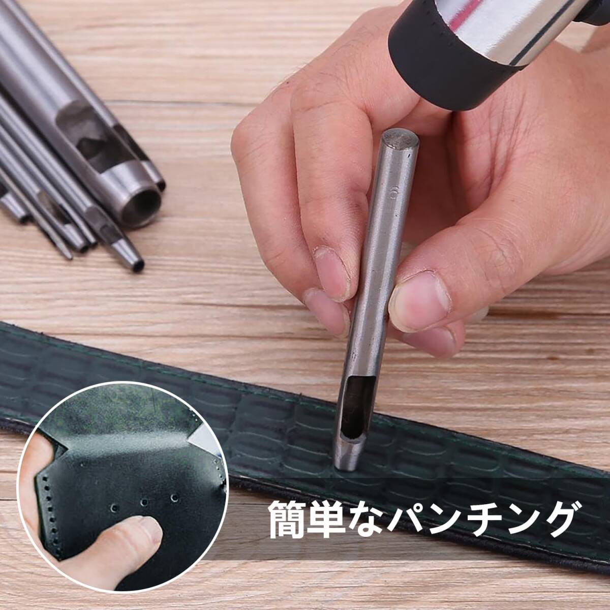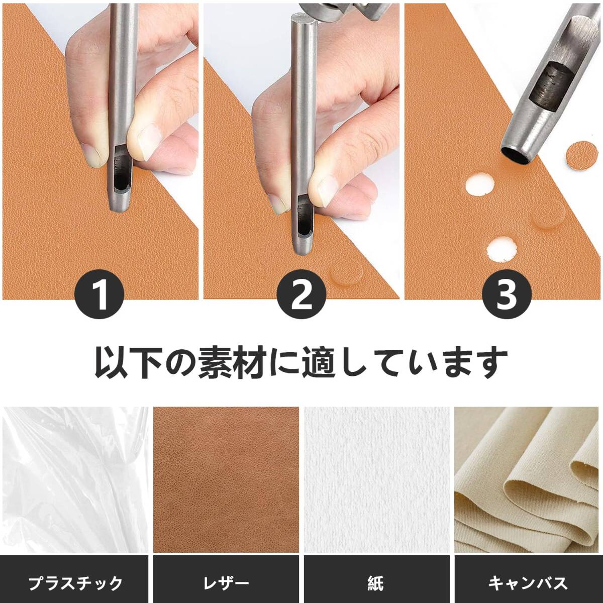 ・全長:約10cm ・パンチ径:0.5/0.8/1.0/1.2/1.5/2.0/2.5/3.0/3.5/4.0mm(10種各1) ・材質:高硬度炭素鋼(焼入れ&熱処理済)で、硬くさびにくく耐久性抜群 ・特徴:貫通力◎、穴あけ時の切削性能向上、連続使用に強い ・用途:時計・バッグ・財布・布・紙・ベルトなどへの丸穴あけに最適 ・便利設計:大きなゴミ取り窓付きで切り屑が簡単に除去可能 |