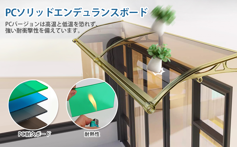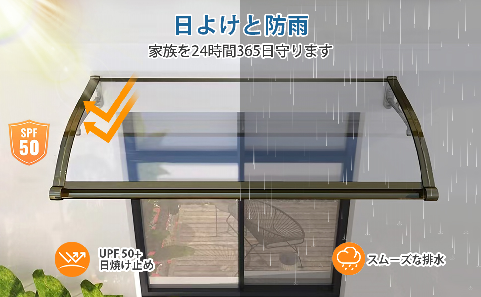 排水機能強化デザイン: この ひさし 屋根 後付け は滑らかな排水機能を備え、豪雨時の水溜りや溢れの問題を簡単に解決します; 屋根ひさし 雨よけ は漏水防止、軽量かつ頑丈で、漏水や日光を気にせず屋外を楽しめます 耐久性のある素材: ひさし 雨よけ 後付けは透明なポリカー