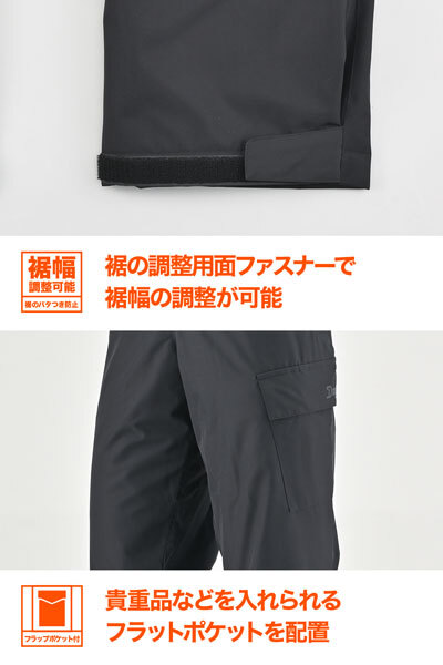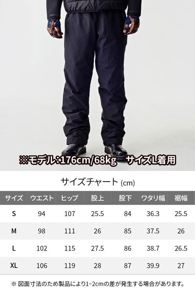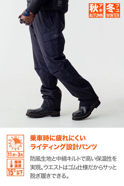 | ●跨りやすさ、乗車姿勢、立ちシルエット、歩きやすさを追及したカットパターン。防風表地と中綿キルトで高い保温性を実現。乗車中の違和感を無くすため、お尻には中綿下部分のみ中綿を入れていません。貴重品用フラップポケット付き。ウエストがゴムなので脱着が簡単。裾は面ファスナーベルトで固定します。 ■仕様 ・カラー:ブラック ・サイズ:L ・素材:表地 - 防風 裏地 - 中綿キルト ・対応シーズン:秋 / 冬 ※図面寸法のため製品により1~2cmの差が発生する場合があります。 ※プロテクターは入れることができません。 ※サイズ交換は承れません。ご注文前に必ずサイズをご確認下さい。 ※取り寄せ品。 |