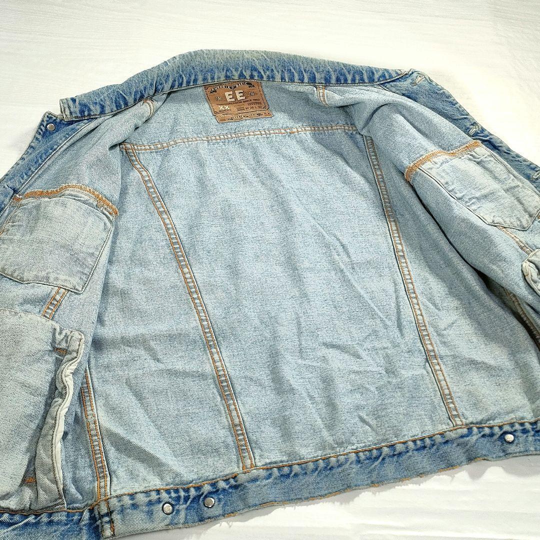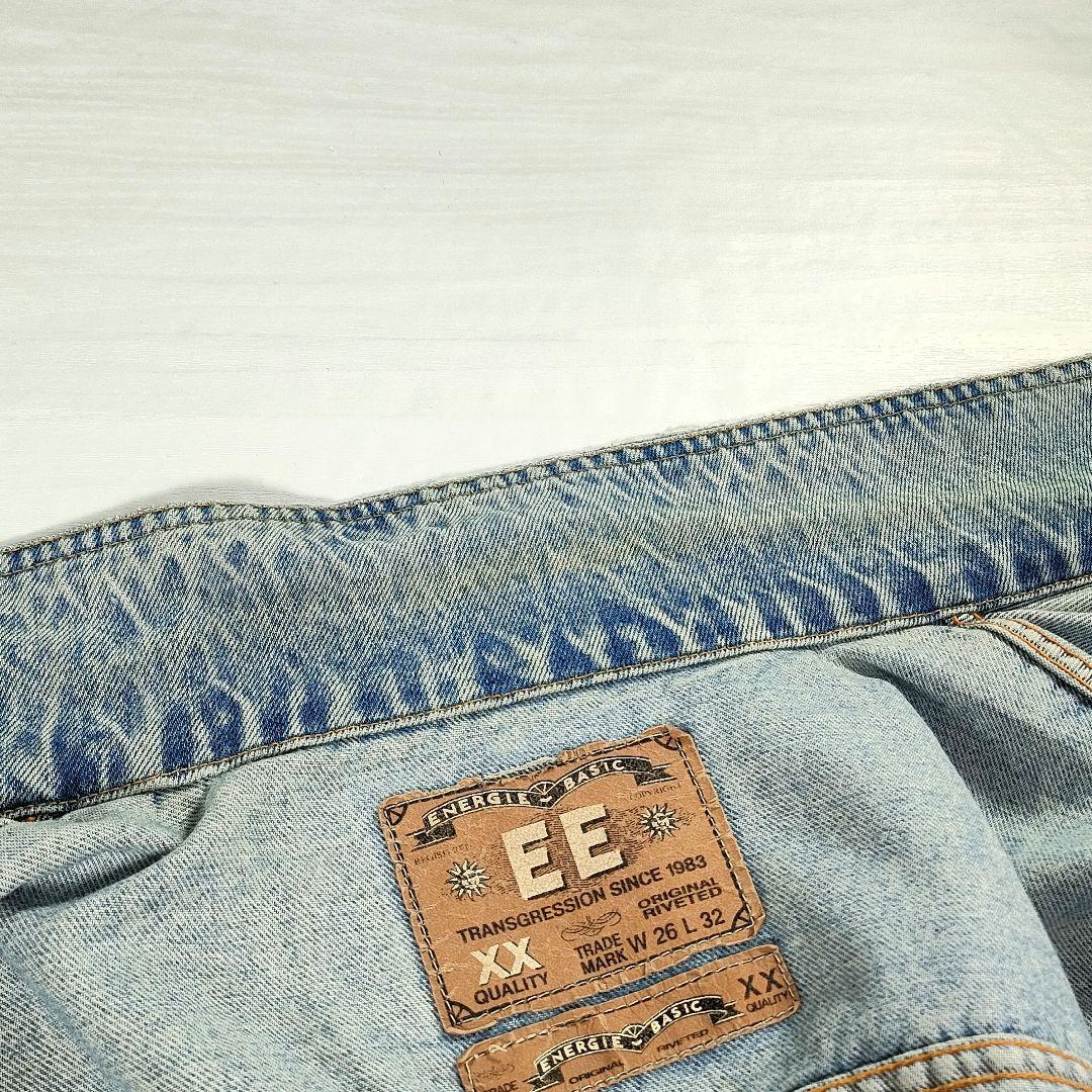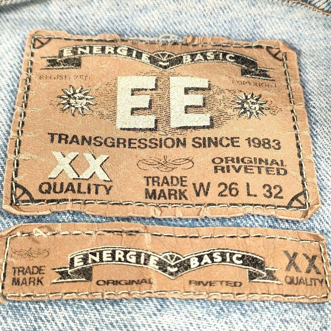 Description: Vintage denim jacket from European brand "Energie Basic", popular in the 1990s-2000s. Features light blue wash and relaxed oversized fit.