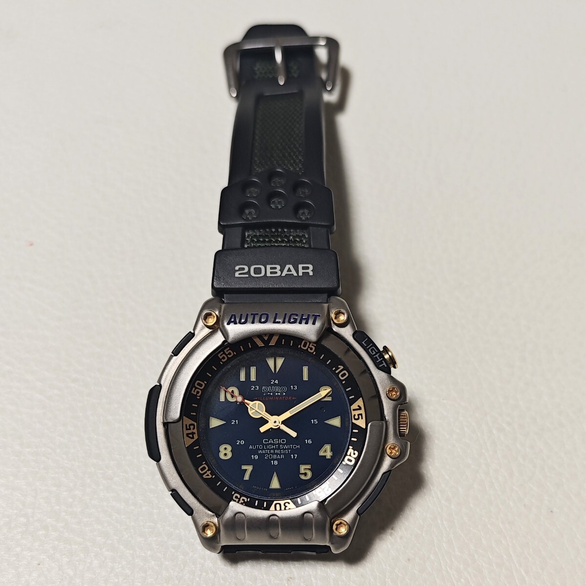 この時計は照明用の電池が時計用と別になっていて、2個電池が入っています。2個共新品電池に交換済です。外観は美品ですが遊革がありません。古い時計をご理解頂けない方の入札はご遠慮願います。