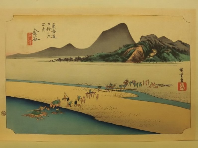 L1672 歌川広重 東海道五拾三次之内 金谷 大井川遠岸 浮世絵 木版画 アダチ版画研究所 |