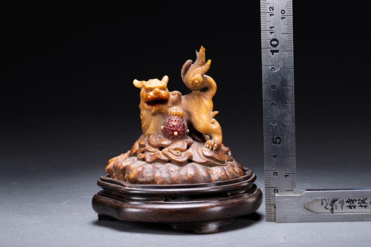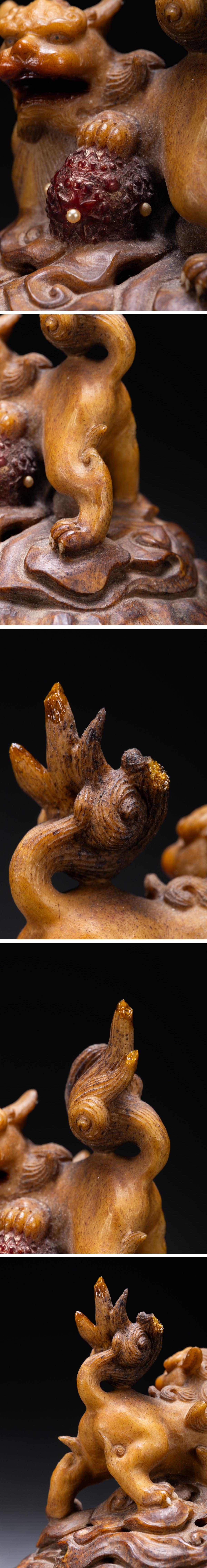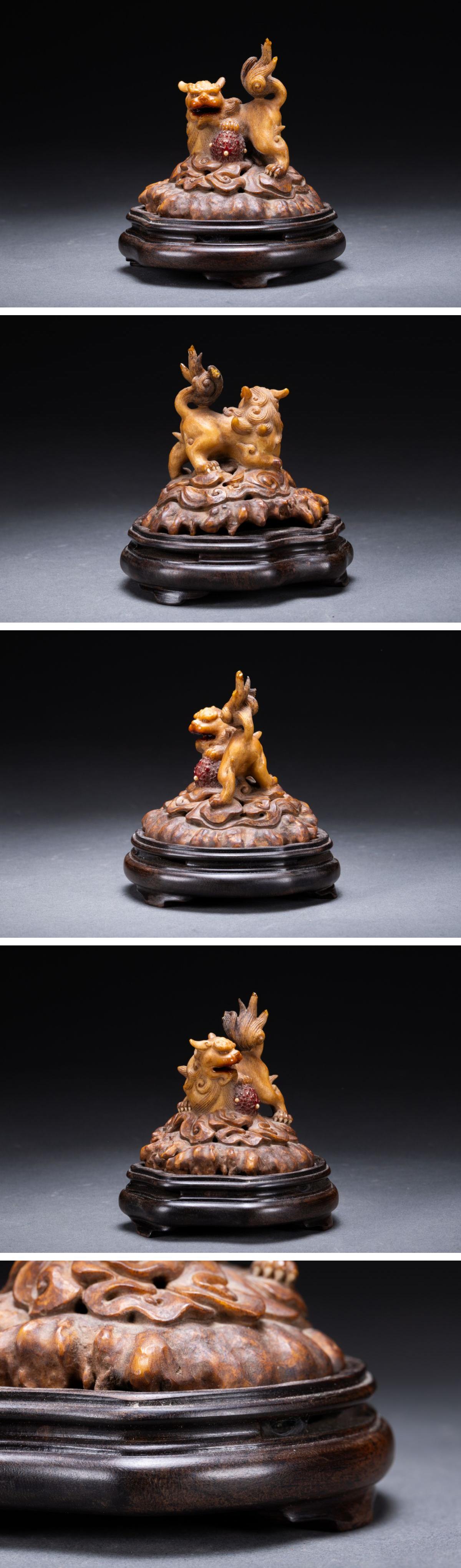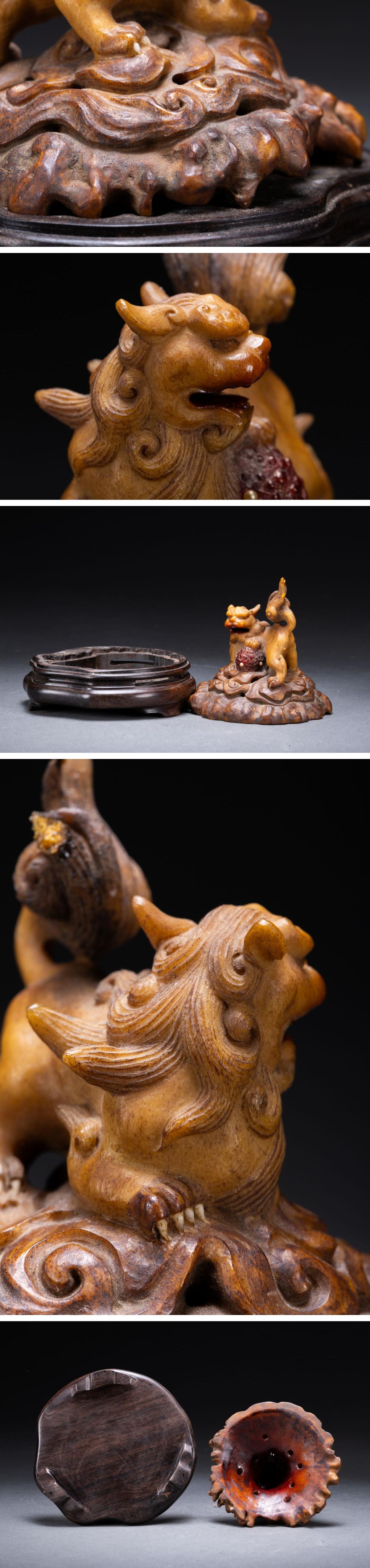 【清】関西某オークション購入 中国・清時代 鹿角彫 唐獅子紋薫炉 極細工 古置物 古擺件 中国古美術7L11-148