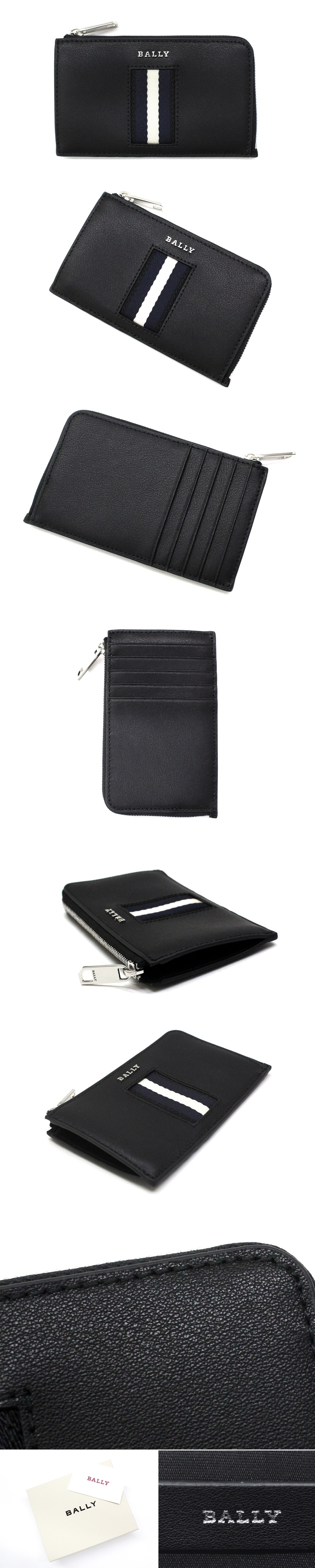 9万新品◆BALLY◆バリーストライプ×メタルロゴ ジップレザースリム財布 ブラック黒