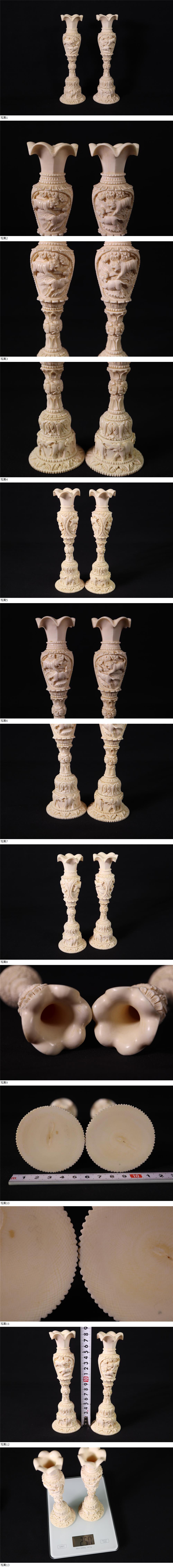| 白材「燭台 一対 動物文 」 細密彫刻 東洋彫刻 置物 天然 天然材質 天然素材 |