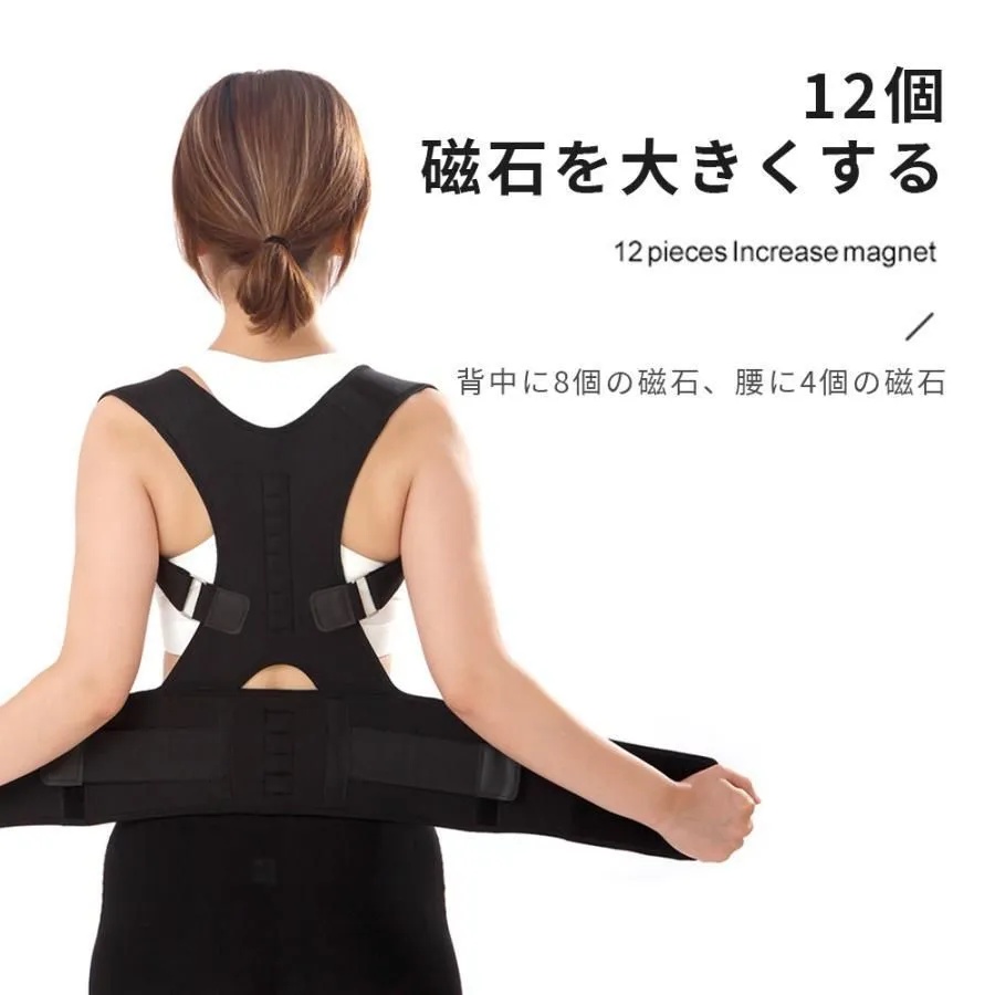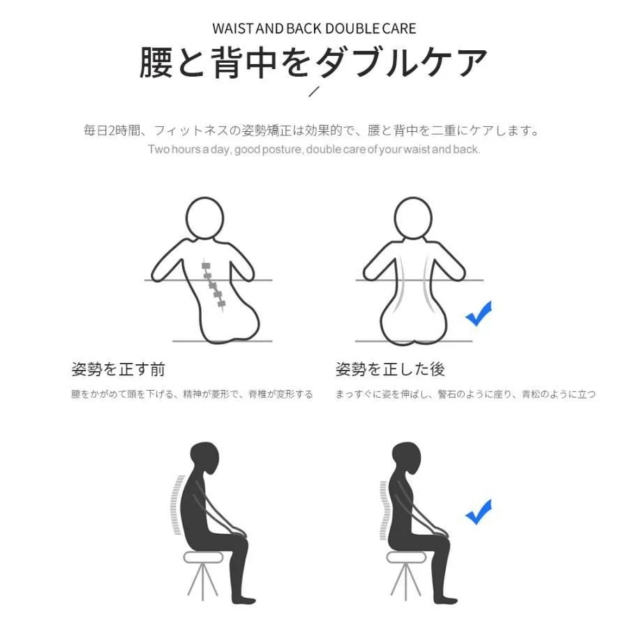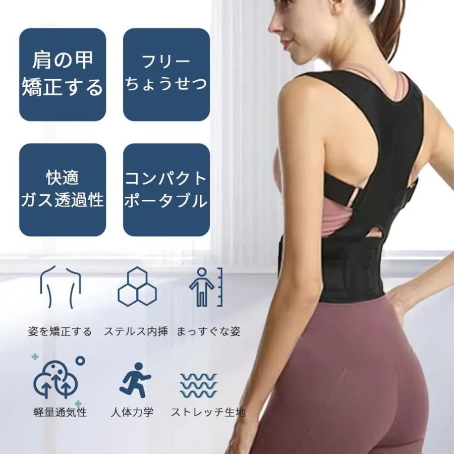 背中をしっかり支えて、猫背を自然に矯正。日常生活やデスクワーク中も無理なく姿勢をキープできます。